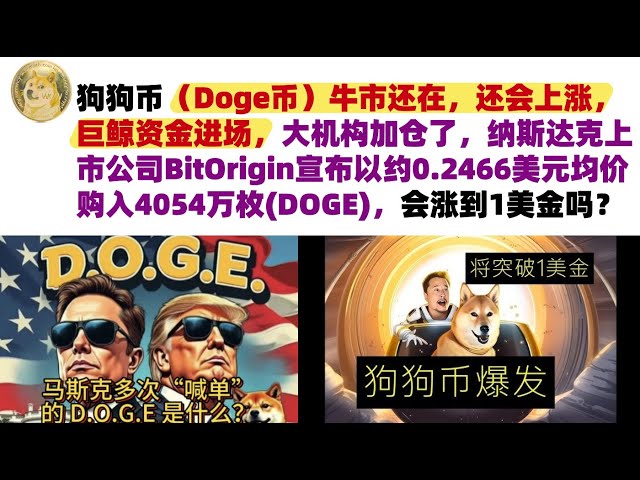 • 狗狗币(Doge币)牛市还在,还会上涨,巨鲸资金进场大机构加仓了,纳斯达克上市公司BitOrigin宣布以约0.2466美元均价购入4054万枚(DOGE)#DOGE币#马斯克狗狗币#DOGE行情分析
