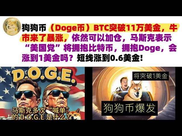 • 狗狗币(Doge币)BTC突破11万美金,牛市来了暴涨,依然可以加仓,马斯克表示“美国党”将拥抱比特币,拥抱Doge,会涨到1美金吗?短线涨到0.6美金#DOGE币#马斯克狗狗币#DOGE行情分析!