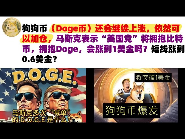 • 狗狗币(Doge币)还会继续上涨,依然可以加仓,马斯克表示“美国党”将拥抱比特币,拥抱Doge,会涨到1美金吗?短线涨到0.6美金#DOGE币#马斯克狗狗币#DOGE行情分析!