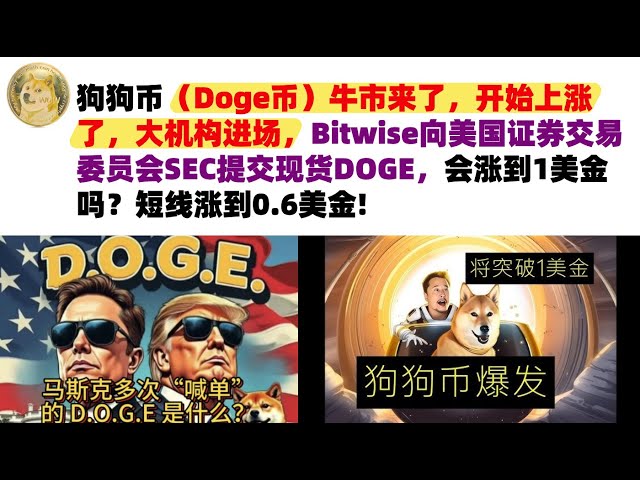 • 狗狗币(Doge币)牛市来了,开始上涨了,大机构进场,Bitwise向美国证券交易委员会SEC提交现货DOGE,会涨到1美金吗?短线涨到0.6美金#DOGE币#马斯克狗狗币#DOGE行情分析!
