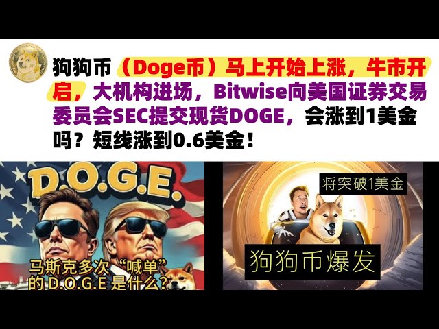 • 狗狗币(Doge币)马上开始上涨,牛市开启,大机构进场,Bitwise向美国证券交易委员会SEC提交现货DOGE,会涨到1美金吗?短线涨到0.6美金#DOGE币#马斯克狗狗币#DOGE行情分析!
