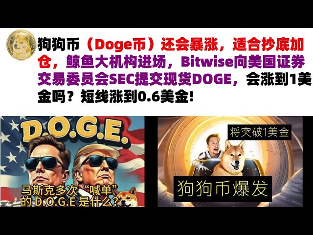 • 狗狗币(Doge币)还会暴涨,适合抄底加仓,鲸鱼大机构进场,Bitwise向美国证券交易委员会SEC提交现货DOGE,会涨到1美金吗?短线涨到0.6美金#DOGE币#马斯克狗狗币#DOGE行情分析!