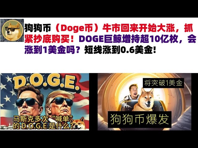 • 狗狗币(Doge币)牛市回来开始大涨,抓紧抄底购买!DOGE巨鲸增持超10亿枚,会涨到1美金吗?短线涨到0.6美金#DOGE币#马斯克狗狗币#DOGE行情分析!