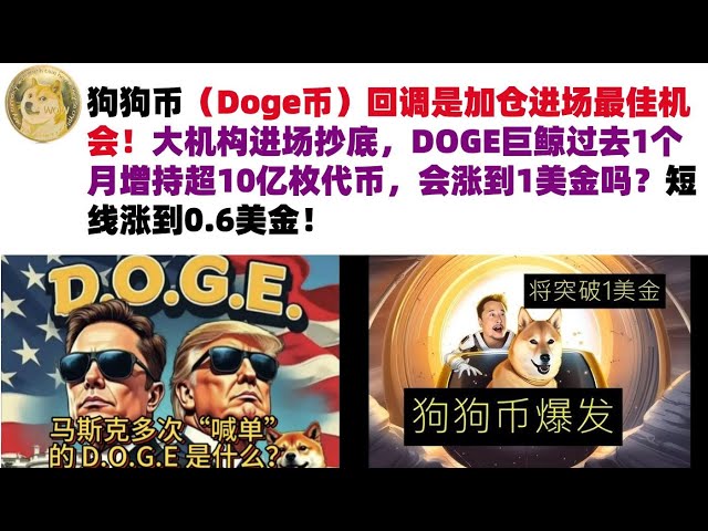 • 狗狗币(Doge币)回调是加仓进场最佳机会!大机构进场抄底,DOGE巨鲸过去1个月增持超10亿枚代币,会涨到1美金吗?短线涨到0.6美金#DOGE币#马斯克狗狗币#DOGE行情分析!