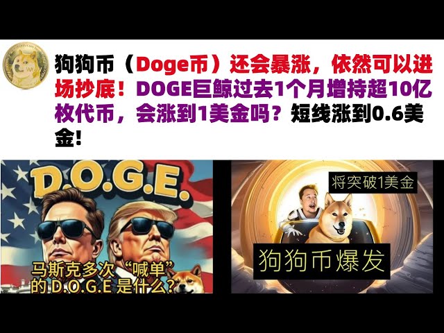 • 狗狗币(Doge币)还会暴涨,依然可以进场抄底!DOGE巨鲸过去1个月增持超10亿枚代币,会涨到1美金吗?短线涨到0.6美金#DOGE币#马斯克狗狗币#DOGE行情分析!