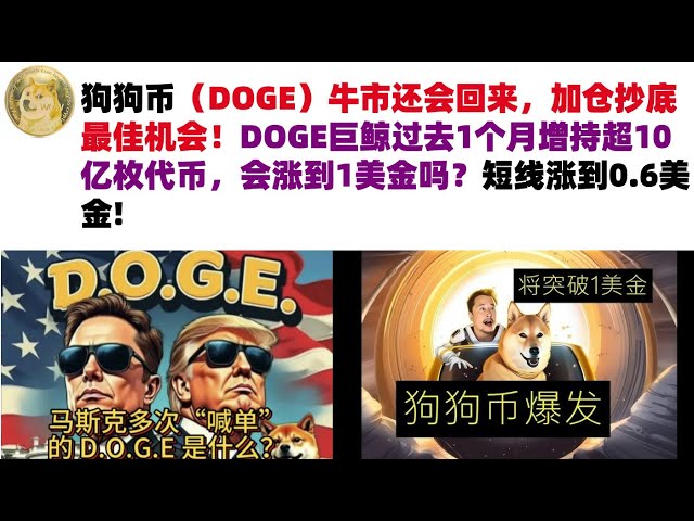 • 狗狗币(DOGE)牛市还会回来,加仓抄底最佳机会!DOGE巨鲸过去1个月增持超10亿枚代币,会涨到1美金吗?短线涨到0.6美金#DOGE币#马斯克狗狗币#DOGE行情分析!