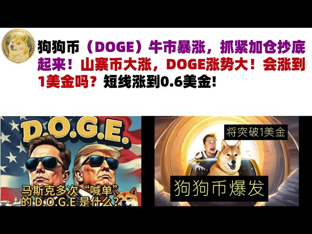 • 狗狗币(DOGE)牛市暴涨,抓紧加仓抄底起来!山寨币大涨,DOGE涨势大!会涨到1美金吗?短线涨到0.6美金#DOGE币#马斯克狗狗币#DOGE行情分析!