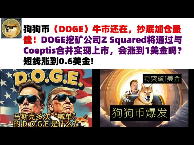 • 狗狗币(DOGE)牛市还在,抄底加仓最佳!DOGE挖矿公司Z Squared将通过与Coeptis合并实现上市,会涨到1美金吗?短线涨到0.6美金#DOGE币#马斯克狗狗币#DOGE行情分析!