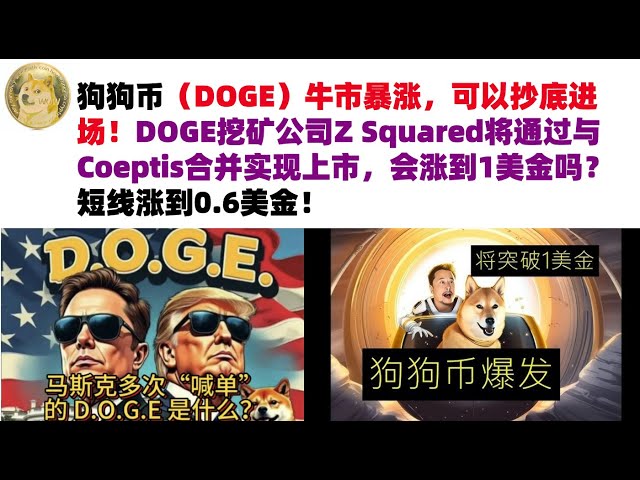 • 狗狗币(DOGE)牛市暴涨,可以抄底进场!DOGE挖矿公司Z Squared将通过与Coeptis合并实现上市,会涨到1美金吗?短线涨到0.6美金#DOGE币#马斯克狗狗币#DOGE行情分析!