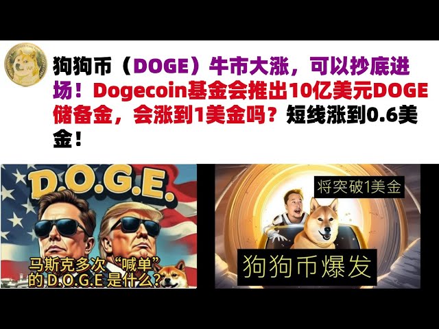• 狗狗币(DOGE)牛市大涨,可以抄底进场!Dogecoin基金会推出10亿美元DOGE储备金,会涨到1美金吗?短线涨到0.6美金#DOGE币#马斯克狗狗币#DOGE行情分析!