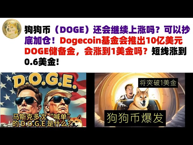 • 狗狗币(DOGE)还会继续上涨吗?可以抄底加仓!Dogecoin基金会推出10亿美元DOGE储备金,会涨到1美金吗?短线涨到0.6美金#DOGE币#马斯克狗狗币#DOGE行情分析!