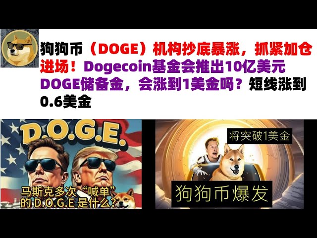 • 狗狗币(DOGE)机构抄底暴涨,抓紧加仓进场!Dogecoin基金会推出10亿美元DOGE储备金,会涨到1美金吗?短线涨到0.6美金#DOGE币#马斯克狗狗币#DOGE行情分析!