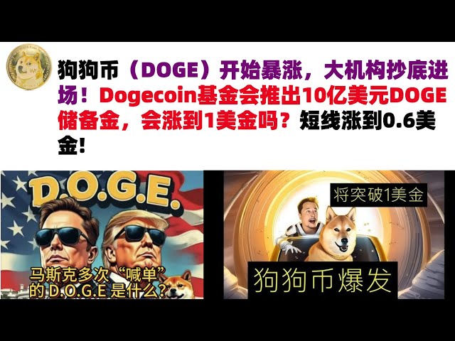 • 狗狗币(DOGE)开始暴涨,大机构抄底进场!Dogecoin基金会推出10亿美元DOGE储备金,会涨到1美金吗?短线涨到0.6美金#DOGE币#马斯克狗狗币#DOGE行情分析!