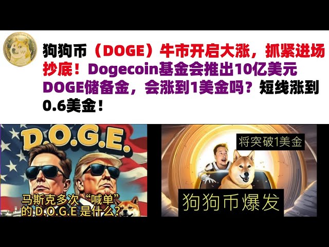 • 狗狗币(DOGE)牛市开启大涨,抓紧进场抄底!Dogecoin基金会推出10亿美元DOGE储备金,会涨到1美金吗?短线涨到0.6美金#DOGE币#马斯克狗狗币#DOGE行情分析!