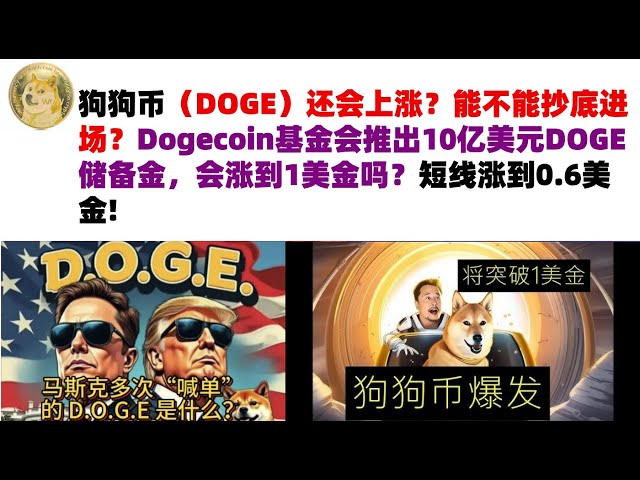 • 狗狗币(DOGE)还会上涨?能不能抄底进场?Dogecoin基金会推出10亿美元DOGE储备金,会涨到1美金吗?短线涨到0.6美金#DOGE币#马斯克狗狗币#DOGE行情分析!