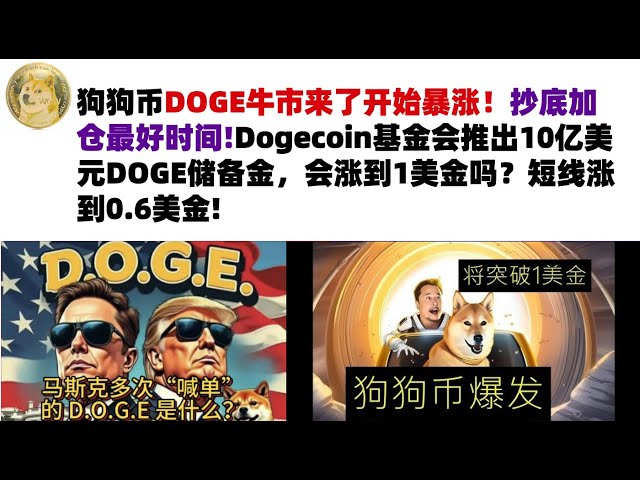 • 狗狗币DOGE牛市来了开始暴涨!抄底加仓最好时间!Dogecoin基金会推出10亿美元DOGE储备金,会涨到1美金吗?短线涨到0.6美金#DOGE币#马斯克狗狗币#DOGE行情分析!
