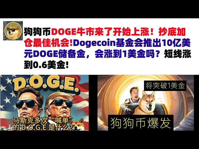 • 狗狗币DOGE牛市来了开始上涨!抄底加仓最佳机会!Dogecoin基金会推出10亿美元DOGE储备金,会涨到1美金吗?短线涨到0.6美金#DOGE币#马斯克狗狗币#DOGE行情分析!