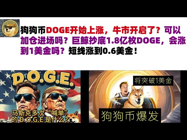 • 狗狗币DOGE开始上涨,牛市开启了?可以加仓进场吗?巨鲸抄底1.8亿枚DOGE,会涨到1美金吗?短线涨到0.6美金#DOGE币#马斯克狗狗币#DOGE行情分析