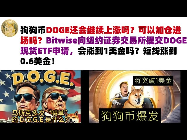 • 狗狗币DOGE还会继续上涨吗?可以加仓进场吗?Bitwise向纽约证券交易所提交DOGE现货ETF申请,会涨到1美金吗?短线涨到0.6美金#DOGE币#马斯克狗狗币#DOGE行情分析