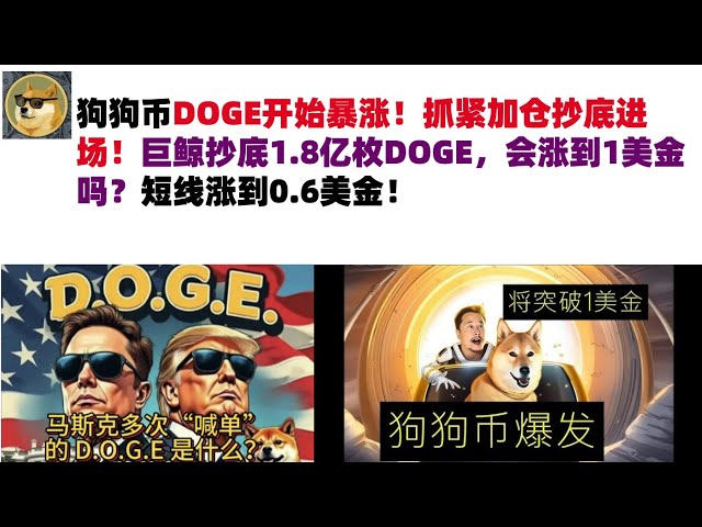 • 狗狗币DOGE开始暴涨!抓紧加仓抄底进场!巨鲸抄底1.8亿枚DOGE,会涨到1美金吗?短线涨到0.6美金#DOGE币#马斯克狗狗币#DOGE行情分析!