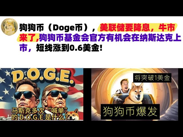 • 狗狗币(Doge币),美联储要降息,牛市来了,狗狗币基金会官方有机会在纳斯达克上市,短线涨到0.6美金#DOGE币#马斯克狗狗币#DOGE行情分析