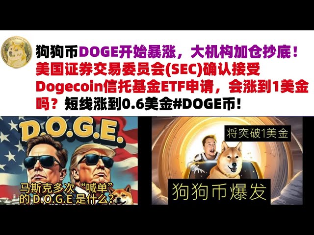 • 狗狗币DOGE开始暴涨,大机构加仓抄底!美国证券交易委员会(SEC)确认接受Dogecoin信托基金ETF申请,会涨到1美金吗?短线涨到0.6美金#DOGE币#马斯克狗狗币#DOGE行情分析