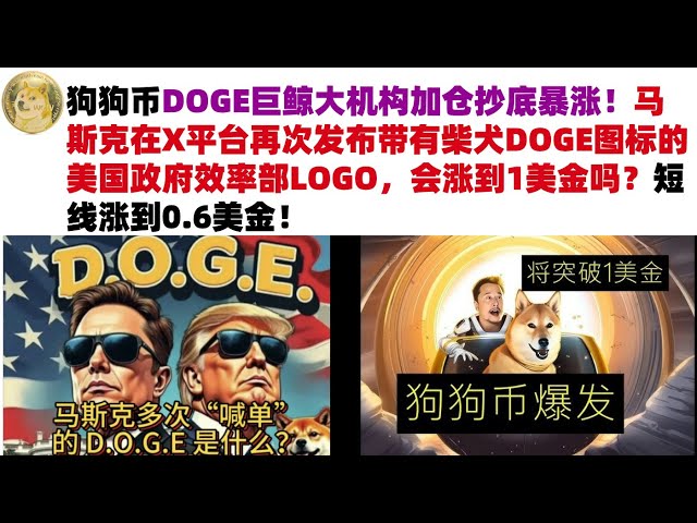 • 狗狗币DOGE巨鲸大机构加仓抄底暴涨!马斯克在X平台再次发布带有柴犬DOGE图标的美国政府效率部LOGO,会涨到1美金吗?短线涨到0.6美金#DOGE币#马斯克狗狗币#DOGE行情分析