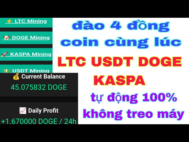 • Kèo Đào 4 Đồng Coin Cùng Một Lúc - LTC USDT DOGE COIN KASPA 100% Đào Tự Động Không Treo Điện Thoại.