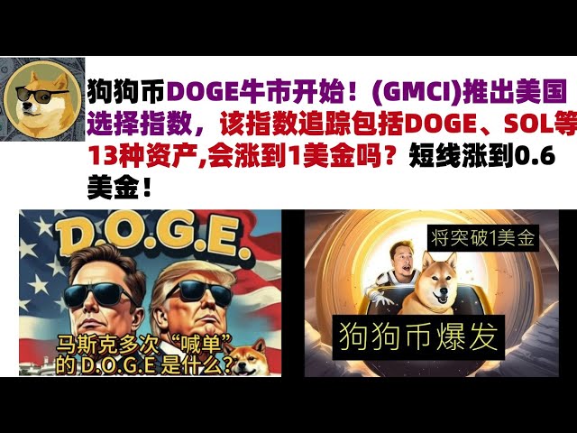 • 狗狗币DOGE牛市开始!(GMCI)推出美国选择指数,该指数追踪包括DOGE、SOL等13种资产,会涨到1美金吗?短线涨到0.6美金#DOGE币#马斯克狗狗币#DOGE行情分析