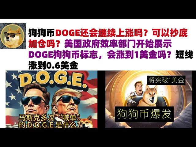 • 狗狗币DOGE还会继续上涨吗?可以抄底加仓吗?美国政府效率部门开始展示DOGE狗狗币标志,会涨到1美金吗?短线涨到0.6美金#DOGE币#马斯克狗狗币#DOGE行情分析