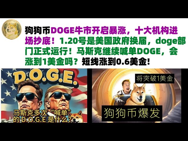 • 狗狗币DOGE牛市开启暴涨,十大机构进场抄底!加仓最佳机会,1.20号是美国政府换届,doge部门正式运行!马斯克继续喊单DOGE,会涨到1美金吗?DOGE币#马斯克狗狗币#DOGE行情分析