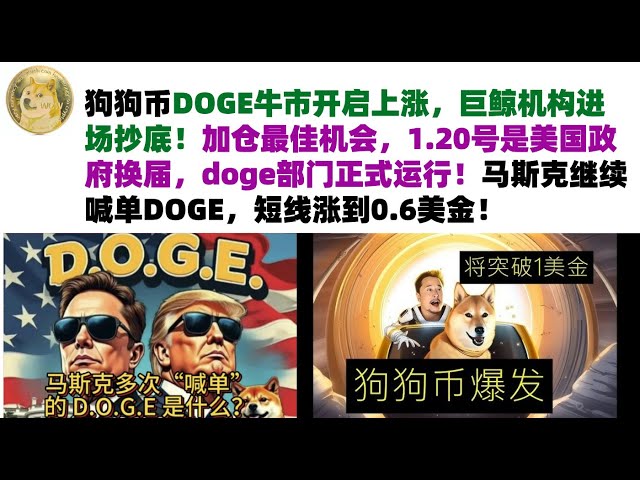 • 狗狗币DOGE牛市开启上涨,巨鲸机构进场抄底!1.20号是美国政府换届,doge部门正式运行!马斯克继续喊单DOGE,会涨到1美金吗?短线涨到0.6美金#DOGE币#马斯克狗狗币#DOGE行情分析!
