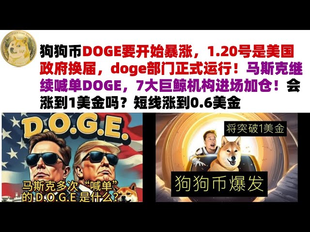 • 狗狗币DOGE要开始暴涨,1.20号是美国政府换届,doge部门正式运行!马斯克继续喊单DOGE,7大巨鲸机构进场加仓!会涨到1美金吗?短线涨到0.6美金#DOGE币#马斯克狗狗币#DOGE行情分析