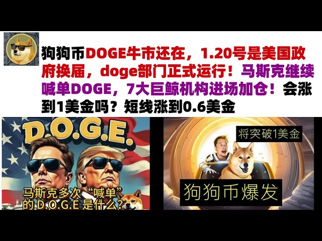• 狗狗币DOGE牛市还在,1.20号是美国政府换届,doge部门正式运行!马斯克继续喊单DOGE,7大巨鲸机构进场加仓!会涨到1美金吗?短线涨到0.6美金#DOGE币#马斯克狗狗币#DOGE行情分析