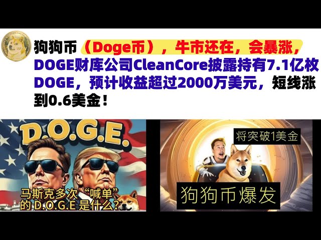 • 狗狗币(Doge币),牛市还在,会暴涨,DOGE财库公司CleanCore披露持有7.1亿枚DOGE,预计收益超过2000万美元,短线涨到0.6美金#DOGE币#马斯克狗狗币#DOGE行情分析