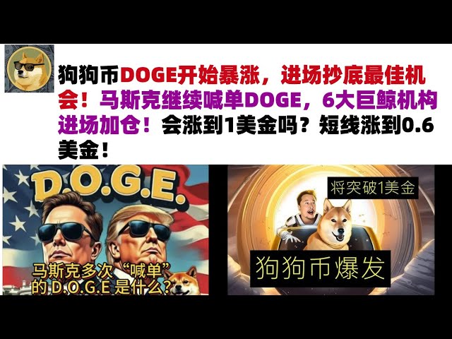 • 狗狗币DOGE开始暴涨,进场抄底最佳机会!马斯克继续喊单DOGE,6大巨鲸机构进场加仓!会涨到1美金吗?短线涨到0.6美金#DOGE币#马斯克狗狗币#DOGE行情分析!