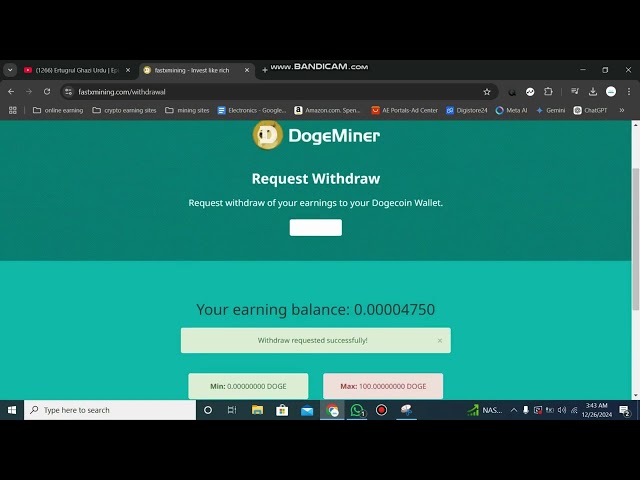 • Without Investment Earn Free Crypto From Doge Coin Mining Site