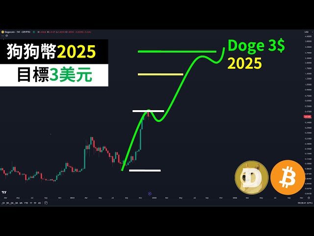• 狗狗币2025年3美元?DOGE疯狂3浪黄金比例?比特币?