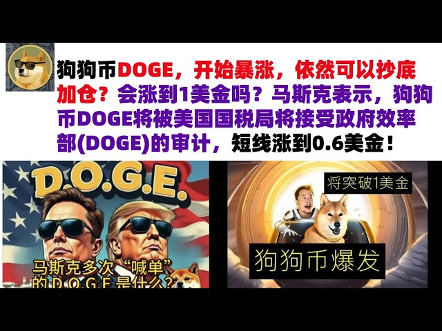 • 狗狗币DOGE,开始暴涨,依然可以抄底加仓?会涨到1美金吗?马斯克表示,狗狗币DOGE将被美国国税局将接受政府效率部(DOGE)的审计,短线涨到0.6美金#DOGE币#马斯克狗狗币#DOGE行情分析!