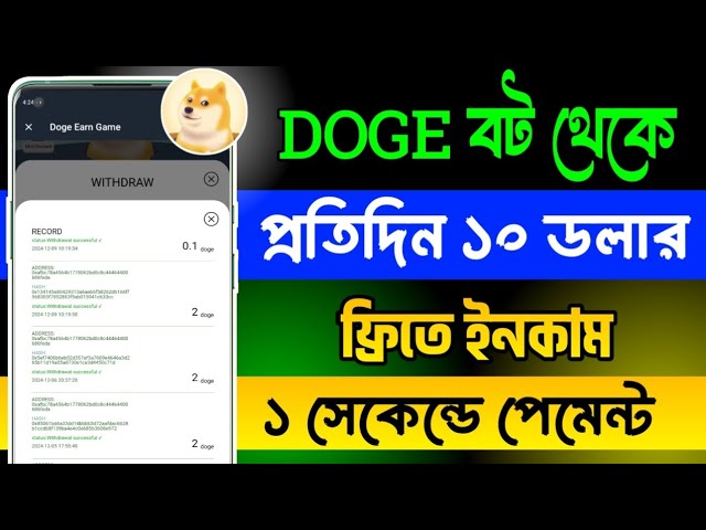 • সেরা Telegram Bot Mining। Doge Earn Game Airdrop। Doge Coin Instant Binance Withdraw। Telegram Bot