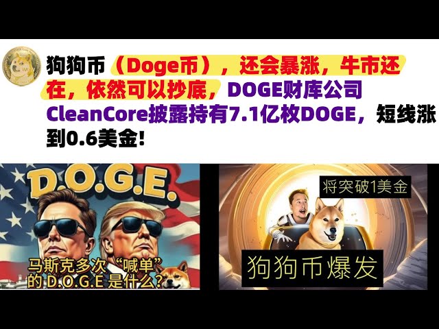 • 狗狗币(Doge币),还会暴涨,牛市还在,依然可以抄底,DOGE财库公司CleanCore披露持有7.1亿枚DOGE,短线涨到0.6美金#DOGE币#马斯克狗狗币#DOGE行情分析