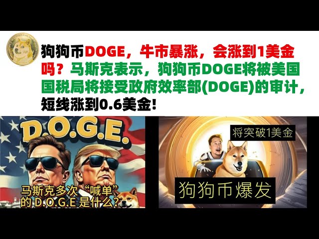 • 狗狗币DOGE,牛市暴涨,会涨到1美金吗?马斯克表示,狗狗币DOGE将被美国国税局将接受政府效率部(DOGE)的审计,短线涨到0.6美金,马斯克狗狗币|DOGE行情分析!