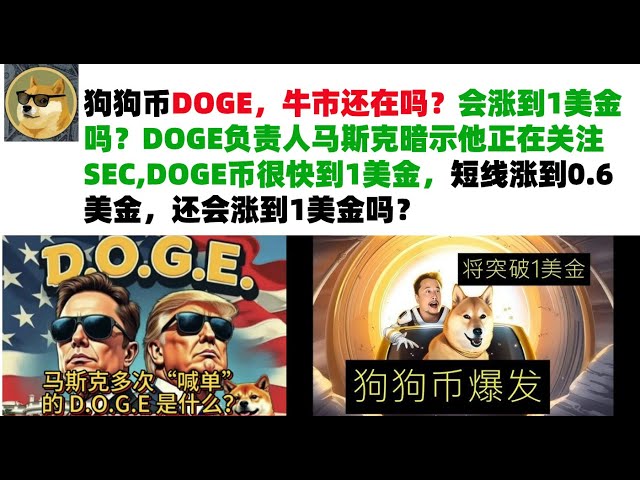 • 狗狗币DOGE,牛市还在吗?会涨到1美金吗?DOGE负责人马斯克暗示他正在关注SEC,DOGE币很快到1美金,短线涨到0.6美金,还会涨到1美金吗?马斯克狗狗币|DOGE行情分析!