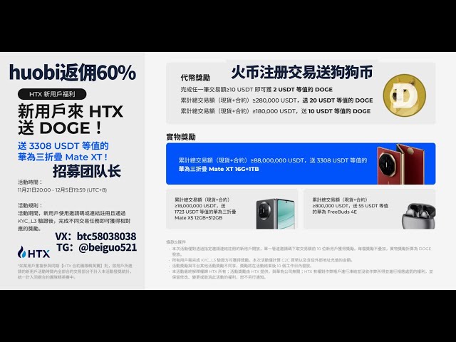 • huobi新用戶來 HTX送 DOGE!交易送3308 USDT 等值的華為三折疊 Mate XT!huobi反佣60%交易送狗狗币 火币反佣60% #btc #eth #doge #huobi