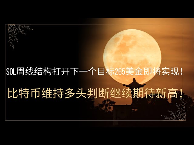 • 狗狗币 doge币 比特币 BTC 最新行情走势分析,比特币维持多头判断继续期待新高!sol周线结构打开下一个目标265美金即将实现!