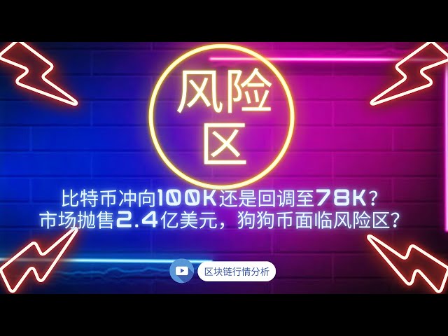 视频 狗狗币 比特币 BTC 最新行情 走势分析 100K 78K 市场抛售 2.4亿美元 风险区