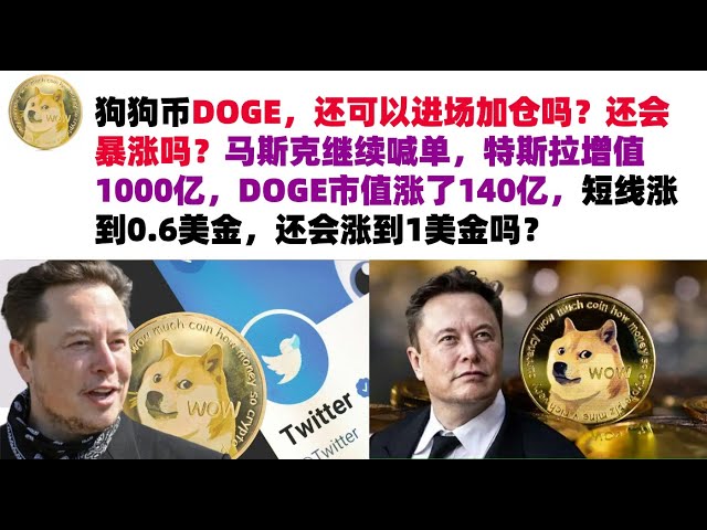 • 狗狗币DOGE,还可以进场加仓吗?还会暴涨吗?马斯克继续喊单,特斯拉增值1000亿,DOGE市值涨了140亿,短线涨到0.6美金,还会涨到1美金吗?马斯克狗狗币|DOGE行情分析!