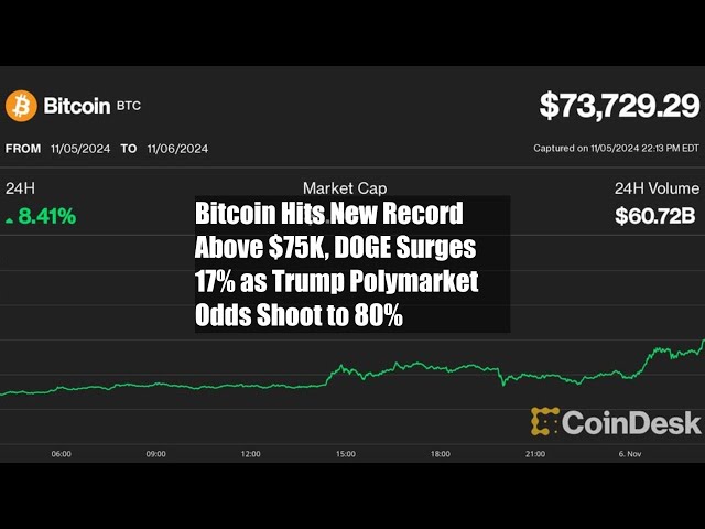 • Bitcoin Hits New Record Above $75K, DOGE Surges 17% as Trump Polymarket Odds Shoot to 80%